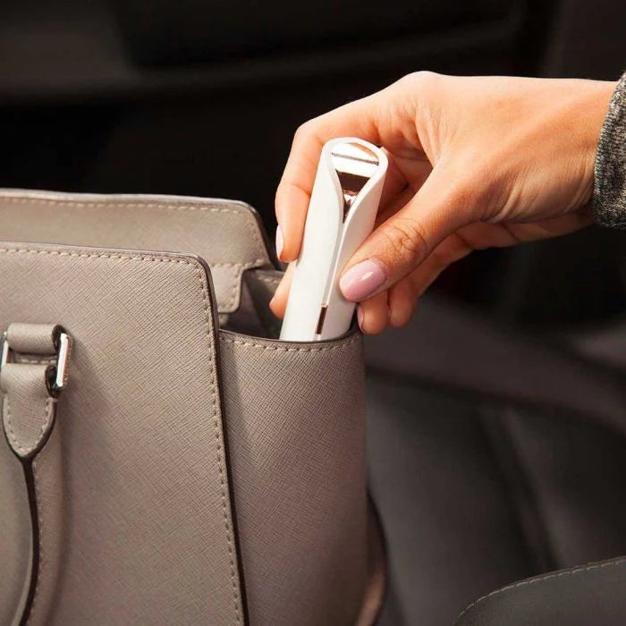 Con su tamaño compacto tipo lápiz labial esta depiladora cabe perfectamente en tu bolso cartera o kit de maquillaje